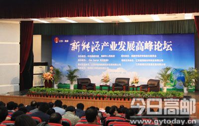 2011年4月14日上午,第七屆中國雙黃鴨蛋節(jié)暨撤縣設(shè)市20周年慶典活動重頭戲之一——新能源產(chǎn)業(yè)發(fā)展高峰論壇在高郵會議中心召開。丁一、夏正祥等高郵市領(lǐng)導(dǎo)出席活動。中國可再生能源學(xué)會光伏專業(yè)委員會主任、太陽能電池領(lǐng)域著名專家趙玉文,聯(lián)合國太陽能中心主任、著名太陽能情報專家喜文華,與高郵市部分黨政干部及數(shù)十家市內(nèi)外新能源企業(yè)共赴高峰論壇,共享陽光盛宴,共謀產(chǎn)業(yè)新發(fā)展。