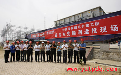 國家電網(wǎng)公司高度重視南陽站主變運(yùn)輸工作,總部特高壓部、物資部,以及交流分公司、物流中心、河南省公司等部門和單位在年初就成立了大件運(yùn)輸協(xié)調(diào)工作組,超前開展了運(yùn)輸準(zhǔn)備工作,一手抓安全可靠,一手抓通行許可,深入開展現(xiàn)場踏勘,科學(xué)制訂運(yùn)輸方案和橋梁加固方案。在總部特高壓部的統(tǒng)籌協(xié)調(diào)下,公司系統(tǒng)各單位齊心協(xié)力,大力發(fā)揚(yáng)特高壓精神,河南省公司等單位主要領(lǐng)導(dǎo)親自抓,主管領(lǐng)導(dǎo)靠前指揮,沿途各地市公司全力保駕護(hù)航,歷時兩個多月,克服了重重困難,實現(xiàn)了首臺主變運(yùn)輸安全順利到站的目標(biāo),為南陽站后續(xù)7臺主變運(yùn)輸打下了堅實的基礎(chǔ)。