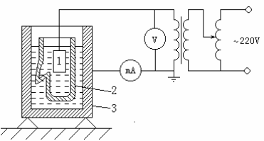在被試手套內(nèi)部放人電阻率不大于100Ω•m的水,如自來水,然后浸入盛有相同水的金屬盆中,使手套內(nèi)外水平面呈相同高度,手套應(yīng)有90mm的露出水面部分,這一部分應(yīng)該擦干,試驗(yàn)接線如圖2所示。