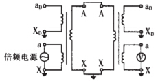 分級絕緣電壓互感器倍頻感應(yīng)耐壓試驗(yàn)過程的分析對二次繞組aX端施加倍頻耐壓,從輔助繞組aDXD端測量。對兩臺分級絕緣電壓互感器同時試驗(yàn)時接線見圖3。從一臺電壓互感器二次繞組aX端施加倍頻耐壓,從另一臺電壓互感器二次繞組aX端測量。
