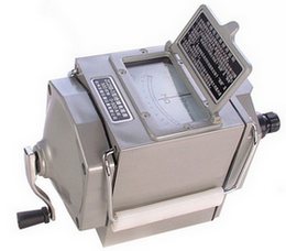 用于測量高值電阻和絕緣電阻的儀表叫做搖表,現(xiàn)在新型產(chǎn)品通常稱為絕緣電阻測試儀或者絕緣電阻表,有時也稱為兆歐表。其中老款搖表的外形如下右圖所示:搖表(絕緣電阻表)主要結(jié)構(gòu)是由手搖發(fā)電機、電磁式無機械反作用的表頭組成,對外有接線柱(L:線路段、E:接地端、G:屏蔽端)。新型的絕緣電阻測試儀通常和數(shù)字萬用表差不多的外形。