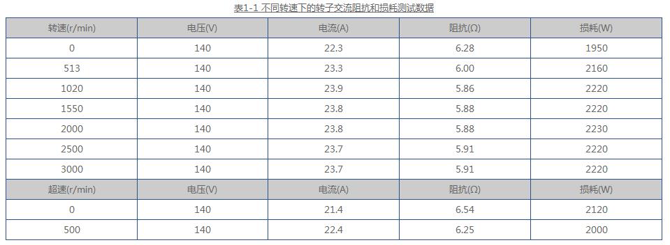 某電廠125MW雙水內(nèi)冷發(fā)電機(jī),QFS-125-2型,額定勵(lì)磁電壓為265V,額定勵(lì)磁電流為1650A,轉(zhuǎn)速為3000r/min。在交接試驗(yàn)時(shí)進(jìn)行了轉(zhuǎn)子交流阻抗和損耗的測試。測試數(shù)據(jù)見表1-1,將測試數(shù)據(jù)與出廠數(shù)據(jù)(見表1-2)作比較,得出結(jié)果是:在測量差范圍內(nèi)無顯著變化。