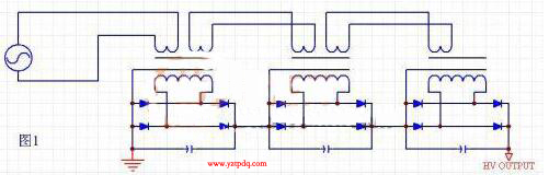 特點是:每個變壓器的升壓比不是很高,磁芯與次級繞組間的壓差不大。