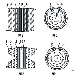 結(jié)構(gòu)骨架3為中空的筒狀,為圓形。線圈1環(huán)繞在結(jié)構(gòu)骨架3的外部,鐵芯5設(shè)置在結(jié)構(gòu)骨架3的內(nèi)部,線圈1內(nèi)置有一個(gè)或多個(gè)第一冷卻通道2,鐵芯5內(nèi)沒(méi)有一個(gè)或多個(gè)第二冷卻通道6。屏蔽板4分別固定在結(jié)構(gòu)骨架3的兩端部,用于限位鐵芯5,防止其在結(jié)構(gòu)骨架3內(nèi)上下滑動(dòng)。線圈1的最內(nèi)層為貼合在結(jié)構(gòu)骨架3外表面的線圈層,線圈1的最外層為線圈層;冷卻冷確通道層由多個(gè)第一冷卻通道2構(gòu)成,多個(gè)第一冷卻通道2沿圓周分布。第一冷卻通道2沿著結(jié)構(gòu)骨架3軸心線方向設(shè)置,即第一冷卻通道2的軸心線和結(jié)構(gòu)骨架3的軸心線之間夾角0度,方便加工制造。所述第二冷卻通道6為兩端開(kāi)口的中空管狀,第二冷卻通道6沿著鐵心5軸心線方向設(shè)置,即第二冷卻通道6的軸心線和鐵芯5的軸心線之間夾角0度,方便加工制造。第一冷卻通道2、第二冷卻通道6的內(nèi)部分別設(shè)有分布在該冷卻通道內(nèi)的用于增強(qiáng)散熱的柵板,柵板由導(dǎo)熱性能優(yōu)越的不導(dǎo)磁的不銹鋼制成。