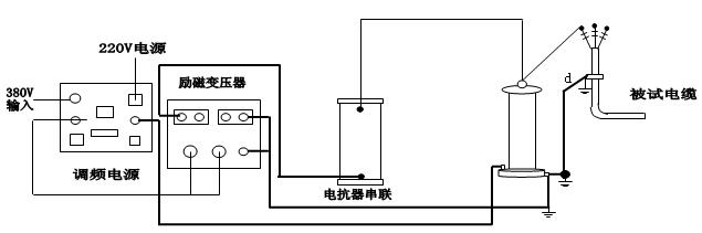 4.1.1.400mm2/10kv電纜的交流耐壓試驗(yàn),試驗(yàn)時(shí)間5min,試驗(yàn)電壓22kv,試驗(yàn)頻率30~300Hz,等效電容量為0.74uF。