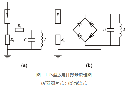 圖1-1(a)示出了JS型雙閥片式結(jié)構(gòu)的放電計數(shù)器原理。當(dāng)避雷動作時,放電電流流過閥片電阻R1,在R1上的壓降經(jīng)閥片電阻R2給電容C充電,C再對電磁式計數(shù)器的電感繞組L放電,使其移動一格,記一次數(shù)。改變R1及R2的阻值,可使計數(shù)器具有不同的靈敏度,一般zui小動作電流為100A(8/20μs沖擊電流)。