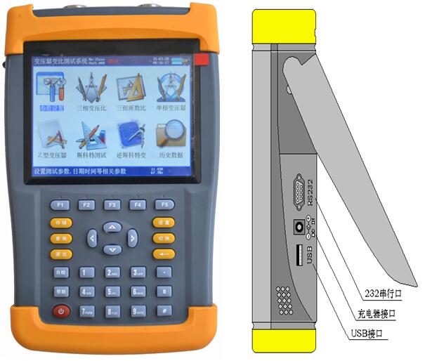 拓普品牌多功能手持式全自動變比測試儀采用大屏幕真彩色液晶屏顯示,全中文圖形化操作界面并配有漢字提示信息、多參量顯示的液晶顯示界面,人機對話界面友好,向量圖顯示及接線判斷為檢查電路的正確性提供了可靠的依據(jù)。全觸摸式導(dǎo)電硅膠鍵盤操作方式,操作手感好,簡便易學(xué)。儀器內(nèi)置大容量掉電不丟失數(shù)據(jù)存儲器,可將現(xiàn)場校驗數(shù)據(jù)保存下來,可擴展存儲1000組現(xiàn)場校驗結(jié)果。儀器除具有完全根據(jù)用戶的現(xiàn)場使用要求,操作簡便,功能完備,數(shù)據(jù)穩(wěn)定可靠的特點外還是國內(nèi)到目前為止一款可以進行盲測(不知道被測變壓器的任何銘牌參數(shù)的情況下準(zhǔn)確測量變比值和組號,同時能準(zhǔn)確測量相角)的手持式變比測試儀;能適應(yīng)各種大中小型變壓器變比測試的需要(包括Z型變、整流變、電爐變、非整點的移相變、牽引變、斯科特及逆斯科特變壓器),是到目前為止國內(nèi)變比測試中技術(shù)先進,測試項目完善,測量參數(shù)較全面的變比測試儀。