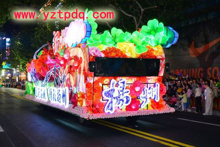 9月15日,上海旅游節(jié)開(kāi)幕大巡游在上?;春B放e行,共有21輛花車和30支境內(nèi)外表演團(tuán)隊(duì)亮相。其中,揚(yáng)州選送的“運(yùn)河名城、精致?lián)P州”大型花車,展示了古城揚(yáng)州的迷人風(fēng)采。由揚(yáng)州市旅游局選送制作的揚(yáng)州花車首次以揚(yáng)州城市代表身份參加了2012上海旅游節(jié)花車巡游活動(dòng)。