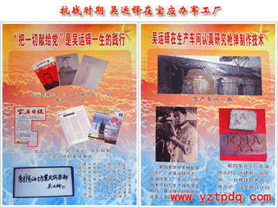 吳運(yùn)鐸是在礦山上長(zhǎng)大的。他從小隨父生活在江西萍鄉(xiāng)安源煤礦。為了謀生,進(jìn)入湖北大冶煤礦做機(jī)電工。抗日戰(zhàn)爭(zhēng)爆發(fā)后,他來到皖南,報(bào)名參加了新四軍,原想上前線拿槍殺敵,卻被安排到軍司令部修械所制造槍炮子彈??吹剿斓牟綐尯妥訌椝偷角熬€去了,緩解了部隊(duì)作戰(zhàn)所需槍支彈藥緊張的矛盾,吳運(yùn)鐸認(rèn)識(shí)到造槍拿槍一樣是為革命,因而將修槍造彈視為自己的神圣使命。1939年5月18日,他光榮地加入了共產(chǎn)黨。在極端艱苦的斗爭(zhēng)環(huán)境中,吳運(yùn)鐸始終抱著“不辱沒共產(chǎn)黨員這個(gè)崇高稱號(hào)”的想法,從不退縮,一往向前。在油坊頭籌建兵工廠初期,一無(wú)廠房,二無(wú)設(shè)備,在吳運(yùn)鐸的帶領(lǐng)下,先借用群眾幾間草房干起來。為了解決設(shè)備問題,他們利用搜集的廢舊鋼材,制成各種機(jī)器數(shù)十臺(tái)。不到幾個(gè)月,就建成了鐵皮、鋼板結(jié)構(gòu)的廠房200多間,在廠東南角建起了煉鐵爐,西北角建起了煉銅爐,占地200余畝,有工人200多人,干部50多人。每到夜晚工廠被汽油燈照得通明,兩座高爐的火光映紅夜空,兵工廠不僅生產(chǎn)子彈、榴彈、炮彈,還不斷研制新式武器,制造“52”小炮、“73”炮、“82”炮。吳運(yùn)鐸在潛心試制各種殺傷力更強(qiáng)的武器過程中多次負(fù)傷。一次,在試爆炮彈時(shí),一枚啞炮突然,吳運(yùn)鐸被炸傷,左手被炸掉4個(gè)手指,左眼被炸傷,右膝蓋和腳趾被炸去一半,滿臉傷口流血不止。他被抬上卡車送醫(yī)院搶救療傷,昏迷了15天才恢復(fù)知覺,可他未等傷口痊愈,就提前出院,打著繃帶,回廠邊工作邊治療,又投入了軍工生產(chǎn)。