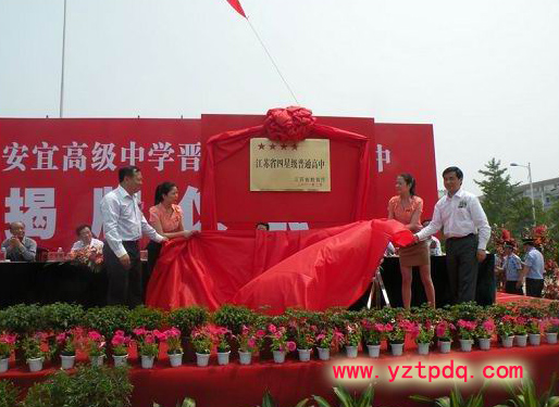 寶應(yīng)安宜高級(jí)中學(xué)歡歌笑語(yǔ),彩旗招展。一場(chǎng)盛大慶典,宜中晉升“省四星”級(jí)高中揭牌儀式在校園內(nèi)隆重舉行。在創(chuàng)建四星級(jí)學(xué)校的濃熱氛圍中,學(xué)校環(huán)境優(yōu)美,充滿生機(jī),到處一片“園林化、生態(tài)化、人文化”氣息。其發(fā)展速度之快,令人驚喜。