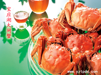 寶應(yīng)湖水質(zhì)良好,生態(tài)優(yōu)越,盛產(chǎn)野鴨、莒蒿等多種野生動植物和水產(chǎn)品,其中鳥類就達147種之多,丹頂鶴、白天鵝等珍稀鳥類經(jīng)常棲息于此。“湖水煮湖魚”,味道鮮美純正 。特別是寶應(yīng)湖大閘蟹,青殼、白肚、金爪、黃毛、膏肥、黃豐、個大、味美,已獲得無公害品牌,與陽澄湖大閘蟹相媲美,遠銷廣東、香港等地,已注冊為國家商標。金秋時節(jié), 賞寶應(yīng)湖風光,嘗寶應(yīng)湖魚蟹,實乃人生一大快事。