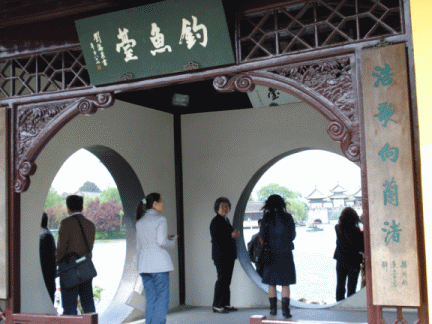 在中國,以“釣魚臺(tái)”命名的景點(diǎn)非常多,但揚(yáng)州的釣魚卻是眾多釣臺(tái)中體量最小,也是極富特色的一座。它是中國名亭建筑的典范,是中國園林“框景”藝術(shù)的代表作品。站在釣魚臺(tái)斜角 60 度,您可以在北邊的圓洞中看到五亭橋橫臥波光:而南邊的橢圓形洞中則正好可以看到巍巍白塔。這一景象一彩一素,一橫一臥,真是堪稱絕妙。這里也是外地游客到揚(yáng)州一定要留影的地方。那洞中借景的畫面正好對(duì)應(yīng)了“三星拱照”的名稱。