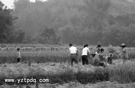 這時人也長大了,可以干得農(nóng)活就比較多了。我們男生有時是踩水車,大家光著腳,輪流上陣,上去就拼命蹬起來,讓有的人跟不上節(jié)奏而吊在橫桿上,這叫“吊田雞”。要是有人被吊了田雞,大家就會樂不可支。當然與后來插隊時踩水車掙工分,就不是一回事了。那時才真正體會到“養(yǎng)苗蓄水水易干,農(nóng)夫踏車聲如沸。車軸欲折心搖搖,腳跟皸裂皮膚焦”的艱苦了。