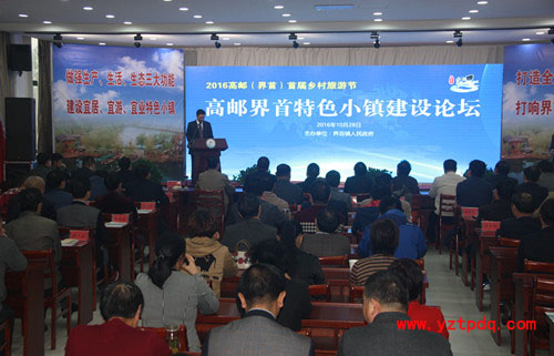 2016年10月28日上午,高郵市界首鎮(zhèn)舉辦特色小鎮(zhèn)建設(shè)論壇,為全鎮(zhèn)特色發(fā)展提供智庫先導(dǎo),激發(fā)建設(shè)宜居、宜游、宜業(yè)特色小鎮(zhèn)的動力和活力,促進生產(chǎn)、生活、生態(tài)、文化的有機融合,進一步打響界首鄉(xiāng)村旅游品牌,走出一條具有界首特點的特色小鎮(zhèn)發(fā)展新路子。此次論壇也是高郵(界首)首屆鄉(xiāng)村旅游節(jié)系列活動的收官力作。鎮(zhèn)黨委副書記毛向前主持論壇議程。