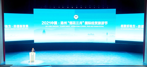 4月18日,2021中國·揚州“煙花三月”國際經(jīng)貿(mào)旅游節(jié)開幕式暨重大項目簽約儀式在運河大劇院舉行。