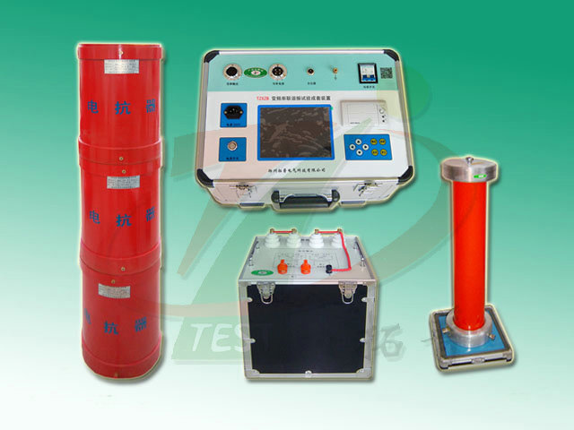 成套設(shè)備主要由變頻調(diào)壓電源1臺(tái)、勵(lì)磁變壓器1臺(tái)、高壓電抗器3臺(tái)、電容分壓器1臺(tái)、附件箱1件組成。